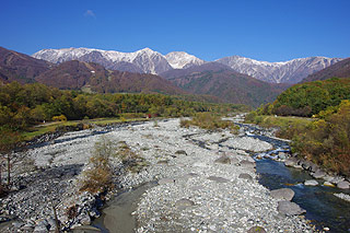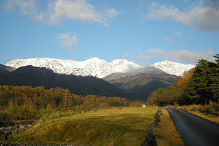 ![]() 秋は青空が一段と映え、写真やスケッチに人気の時期! アルプスに現れた雪が、冬の訪れが近いことを感じさせます。 |