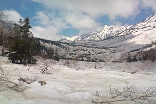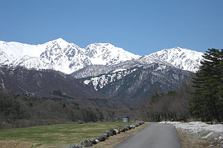 ![]() 北アルプスに映える残雪が動物や模様に見える 雪形 白馬大橋から見える「代かき馬」 見頃:例年4月下旬~5月中旬頃 |