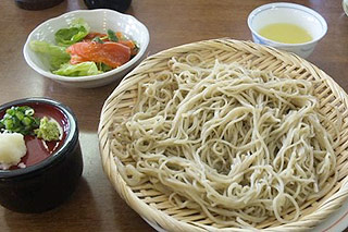 体験もできる手打ちそばは白馬産のそば粉を使い、 つなぎの小麦粉も長野県産。 |