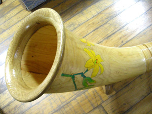 ![]() 宿のオーナーは「白馬アルプホルンの会」のメンバー。アルプホルンは先生の指導の下、間伐材を利用して自分たちで作ったもので、グリーンシーズンはイベントなどで演奏することも。 山をバックにするのが映えます。 |