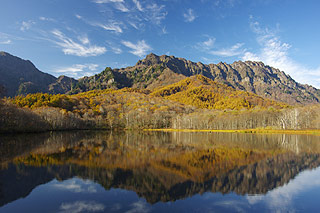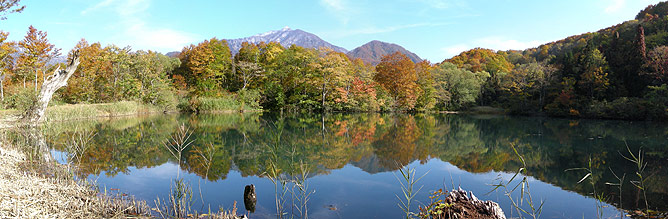 ![]() 小谷村「鎌池」 湖面に映える鮮やかな色彩が神々しく映えます。 |