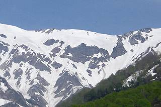 ![]() 北アルプスに映える残雪が動物や模様に見える 雪形 白馬大橋から見える「代かき馬」 見頃:例年4月下旬~5月中旬頃 |